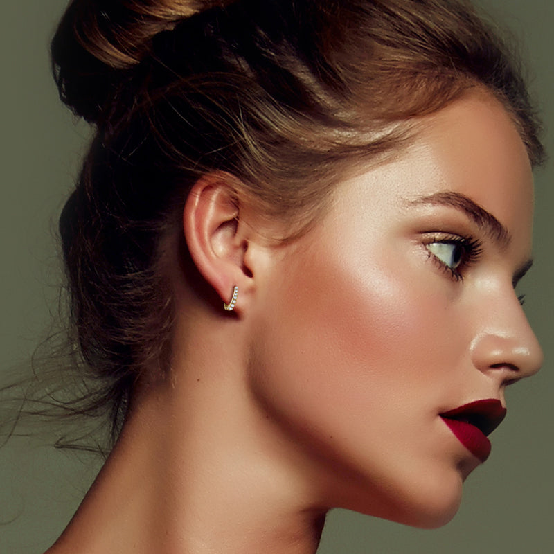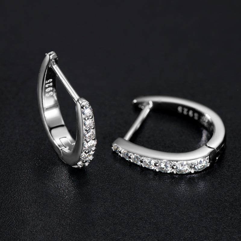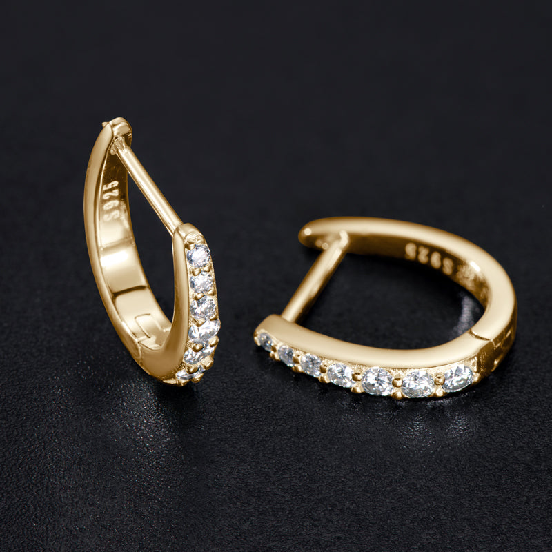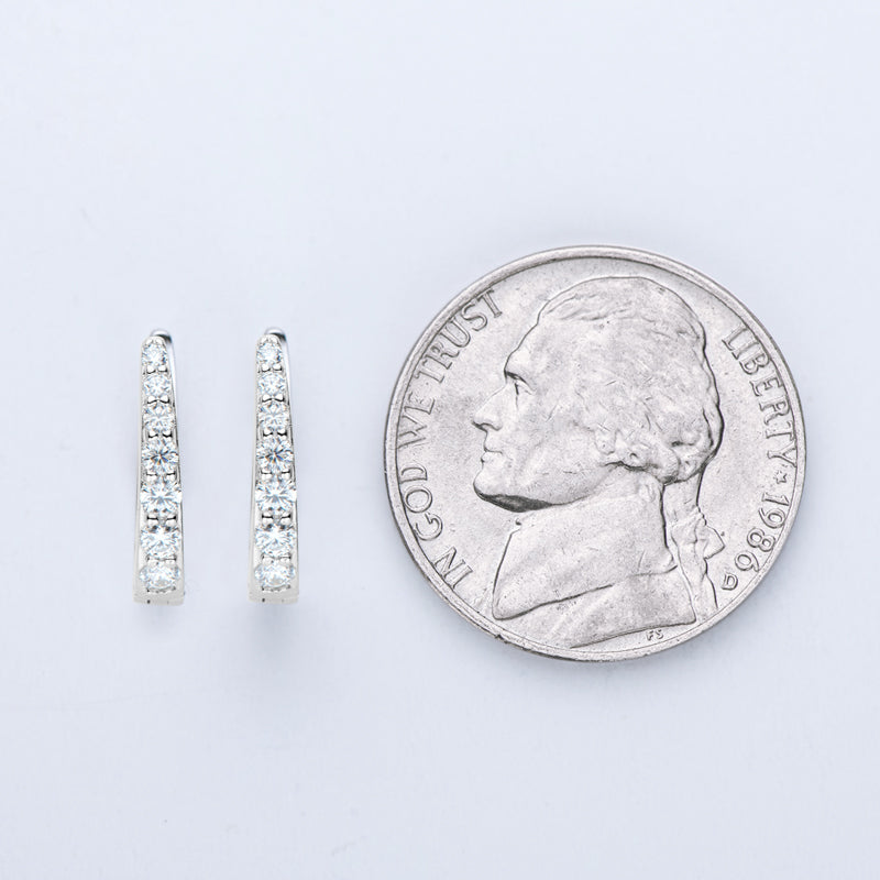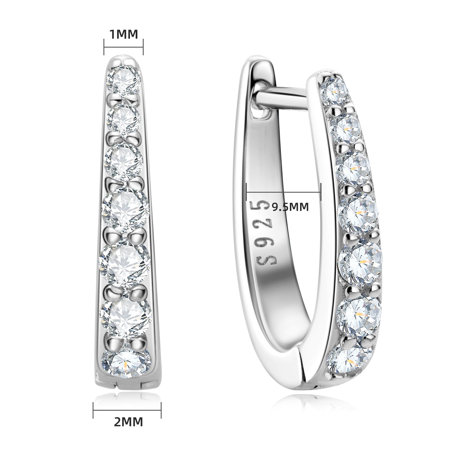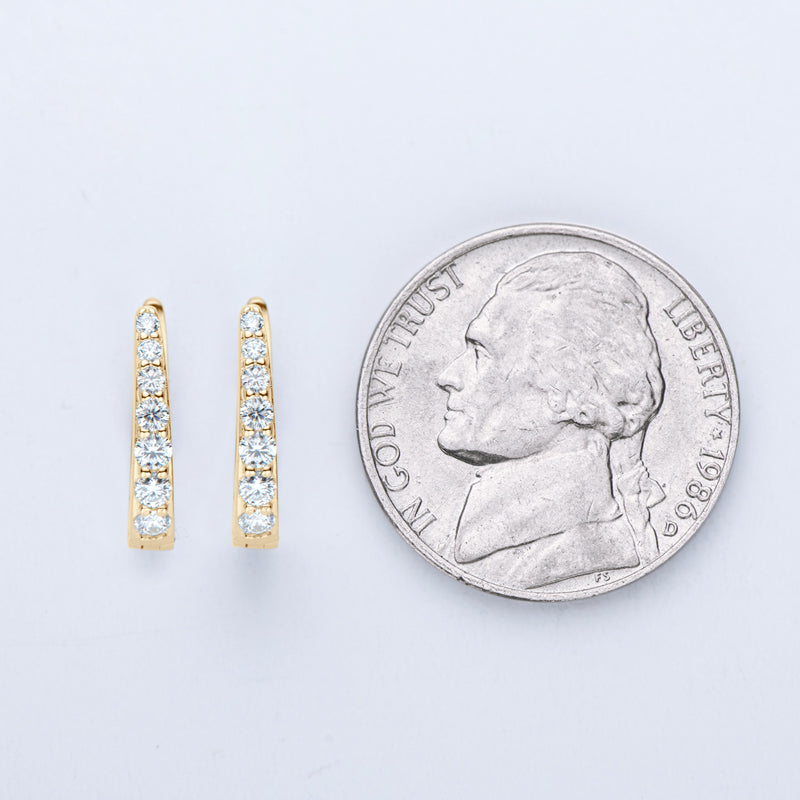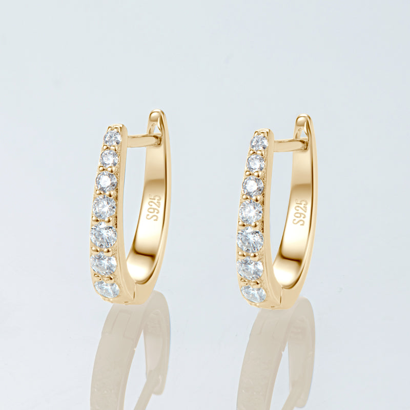 These AMES moissanite diamond earrings come with 7 different diamonds ranging in sizes 2mm, 1.75mm, 1.5mm, 1.4mm, 1.3mm. They are available in white or yellow gold plated over real sterling silver. Elevate any outfit with the sparkle and brilliance of these high-quality earrings.