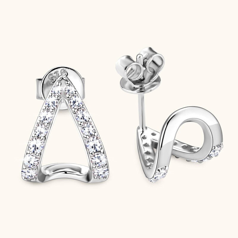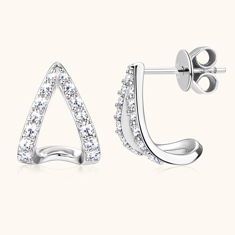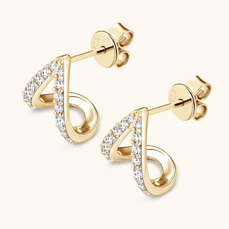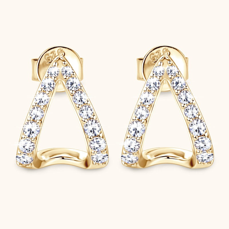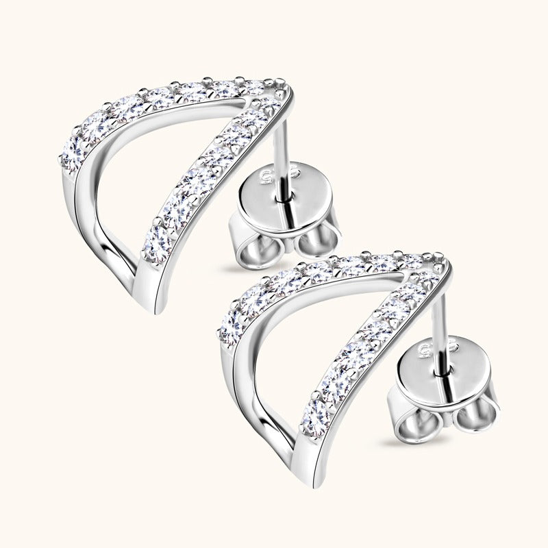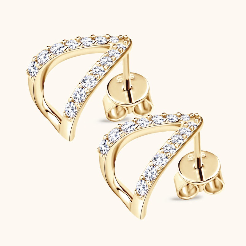 Laced with real moissanite diamonds, our ARIBELLA earrings can be purchased in white gold or yellow gold. 925 sterling silver is used as the base to ensure a solid piece, then plated in gold or white gold.