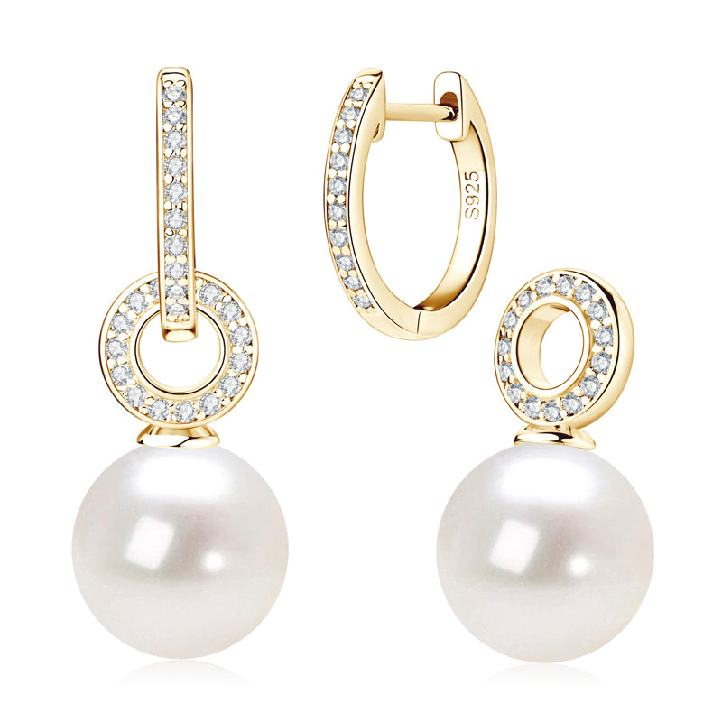 Our expertly designed Britannia earrings are the perfect addition to any jewelry collection. They can be worn with or without the pearl pendant, which you can see in the product pictures. Crafted with cultured 9mm pearls and grade 5A zircon accents, these elegant pearl drop earrings come in both yellow and white gold plated over 925 sterling silver. Make a sophisticated statement with these timeless and versatile earrings.