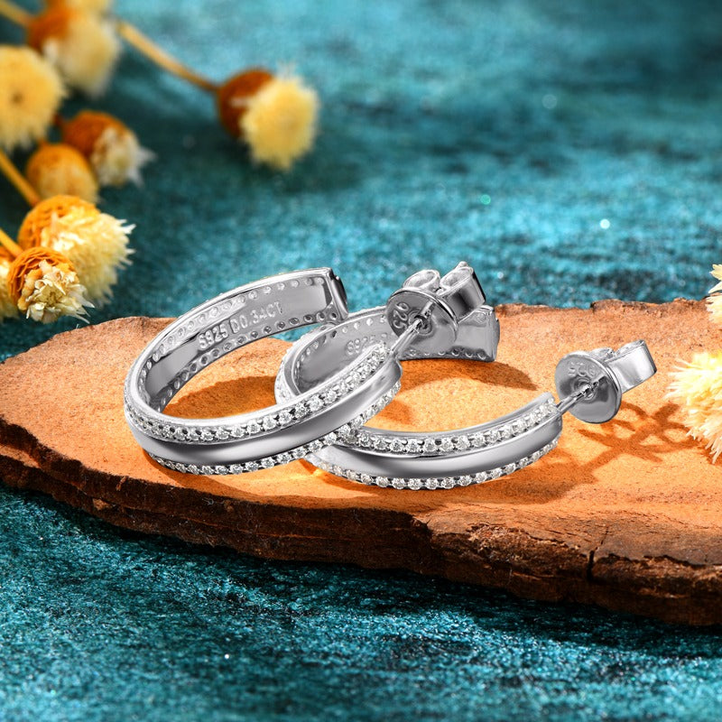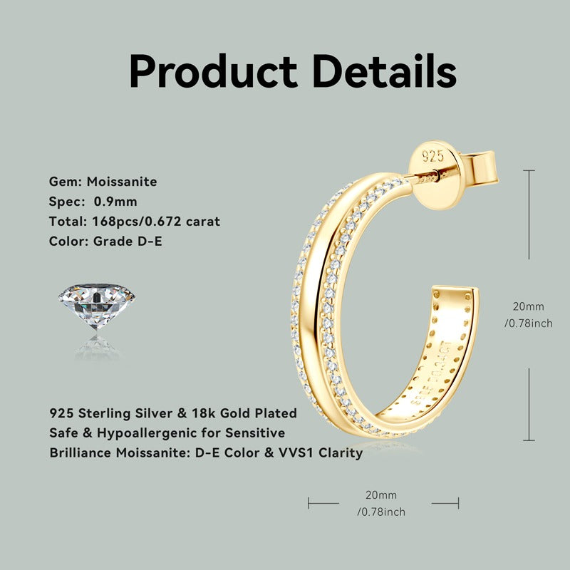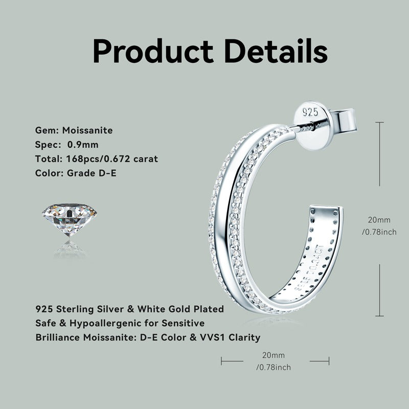 Loaded with 168 real moissanite diamonds, our Broadway hoop earrings will receive compliments anywhere you go. Total carat weight is 0.672