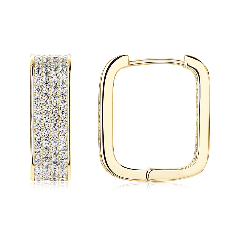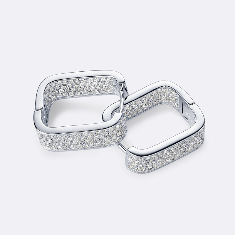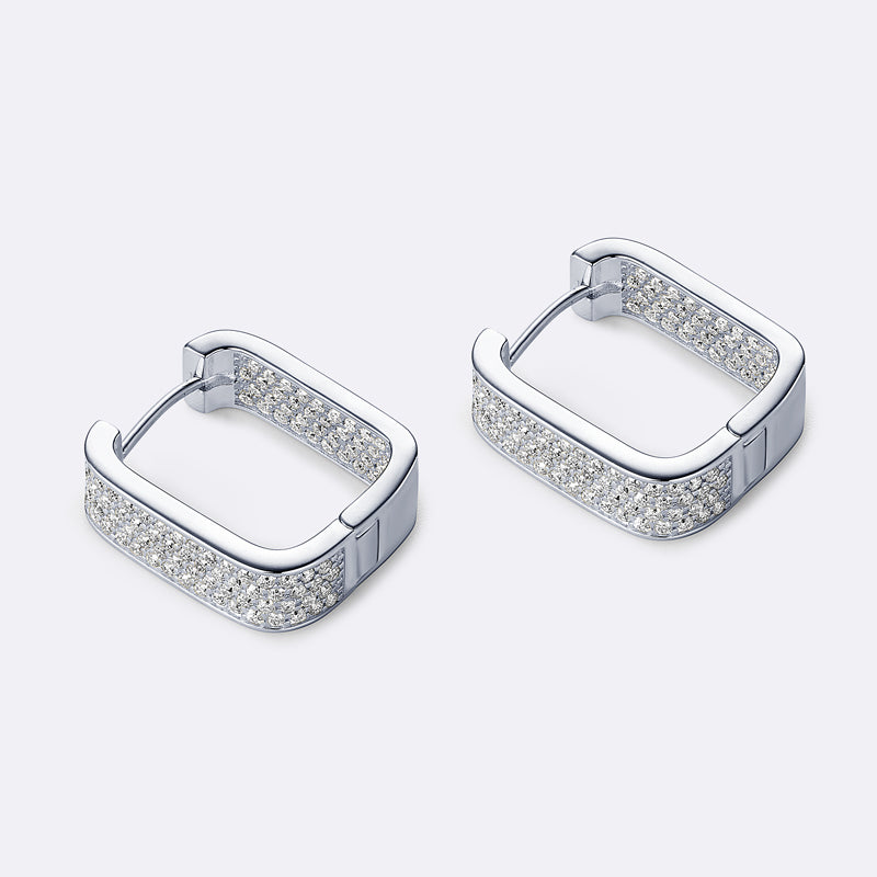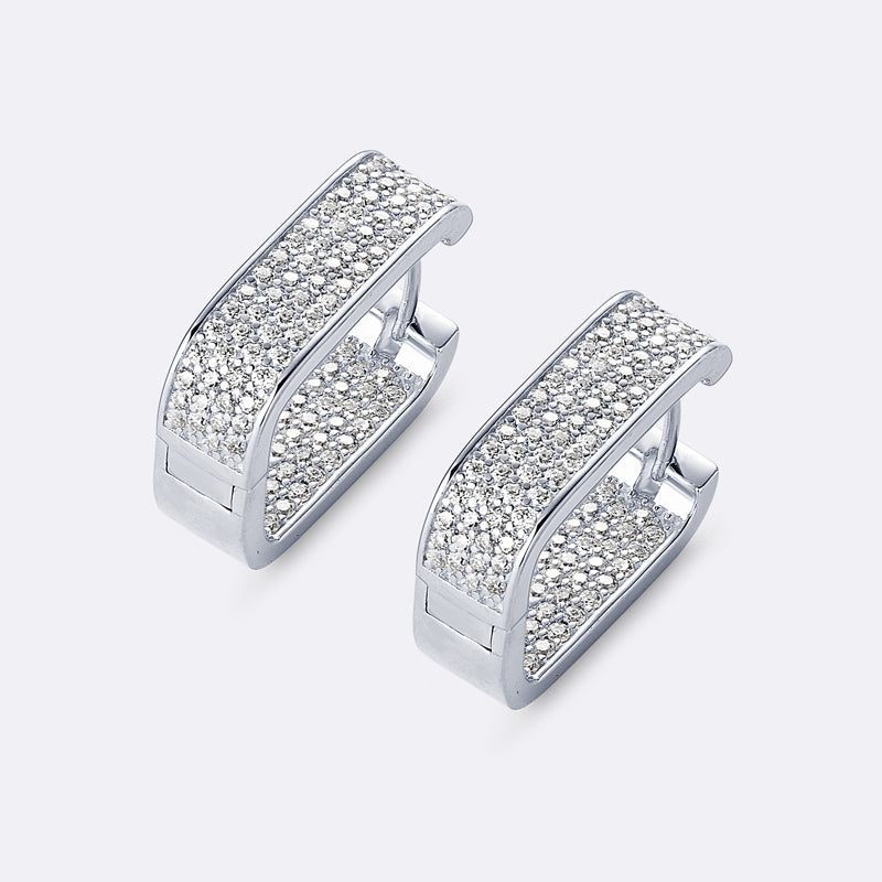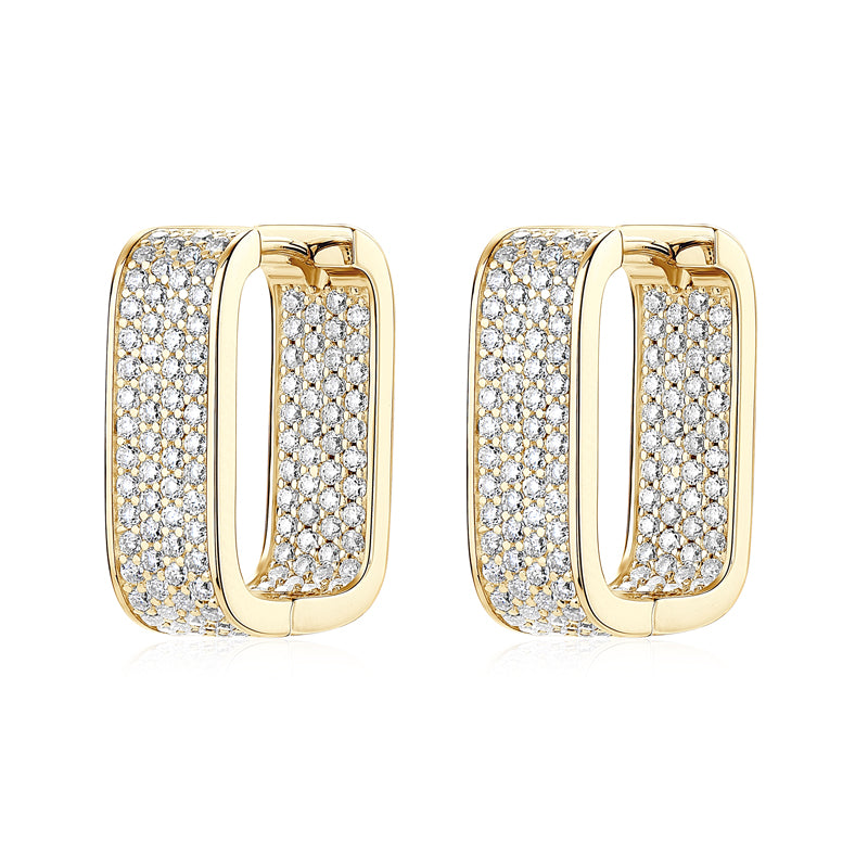 Paved with 232 moissanite diamonds, these bold earrings carry a total of 1.40 carats. Made from the highest quality materials, these earrings will always be bright and beautiful. The base material is sterling silver and you can choose from either white or yellow gold plating.