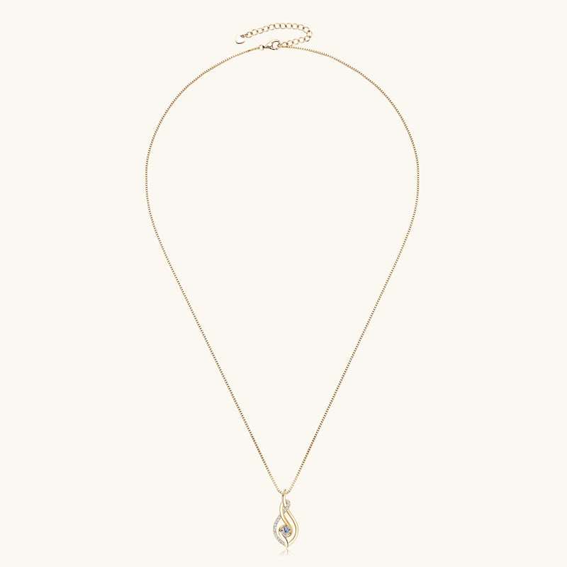 Luxury & diamonds lace our Spoiled Rich Deville diamond Necklace. Choose from yellow gold or white gold and enjoy the sparkle of real moissanite diamonds. The main diamond is 0.3ct (4mm) and 16 more 1.2mm diamonds.