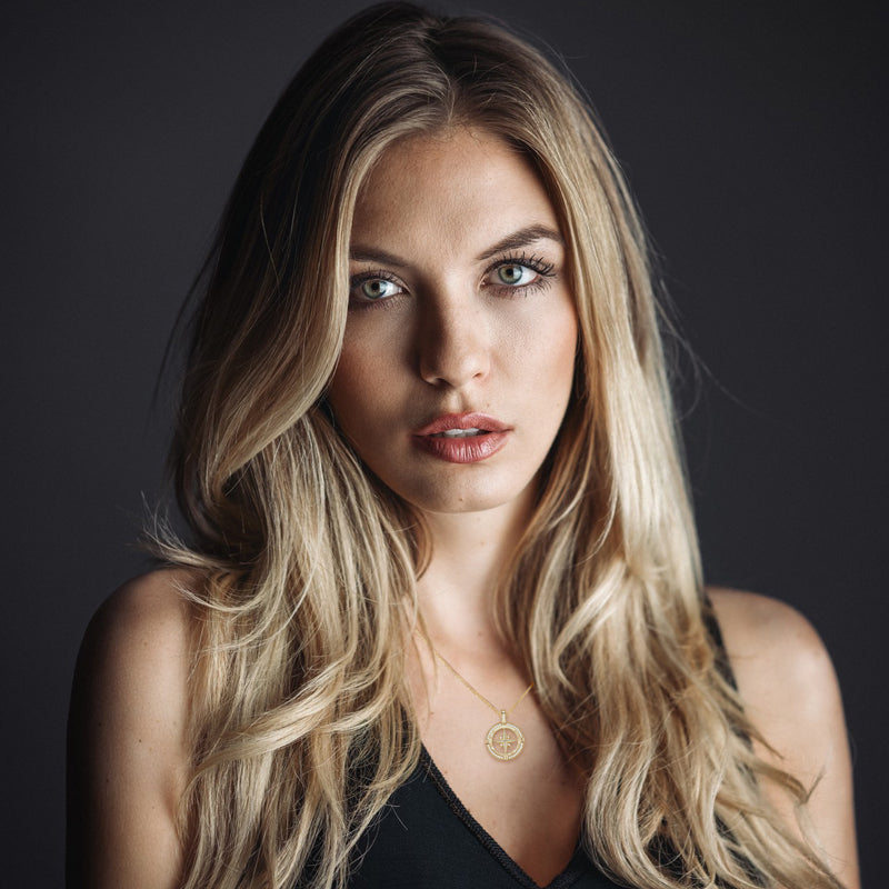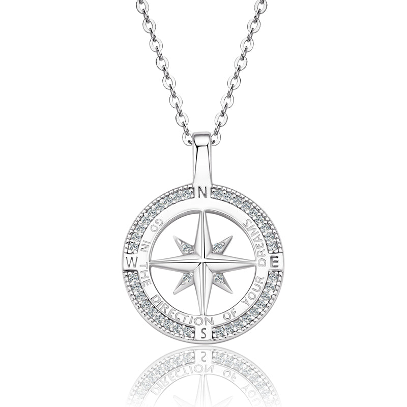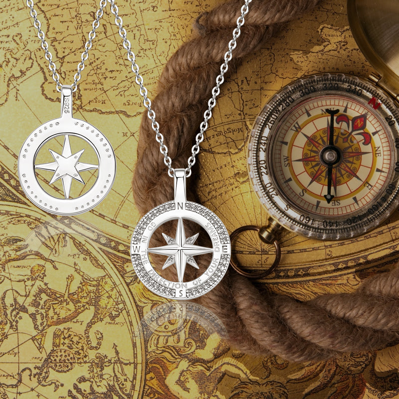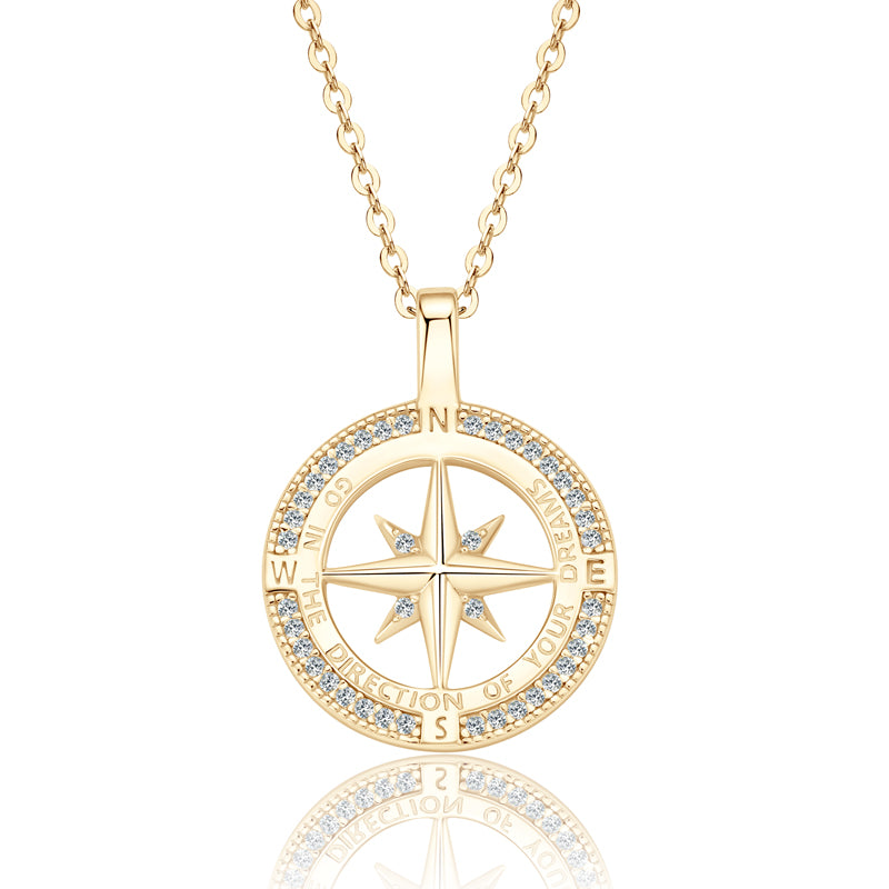 The Found necklace by Spoiled Rich features 40 zircons lining a beautiful compass pendant. This piece comes in either gold or white gold plated over sterling silver.