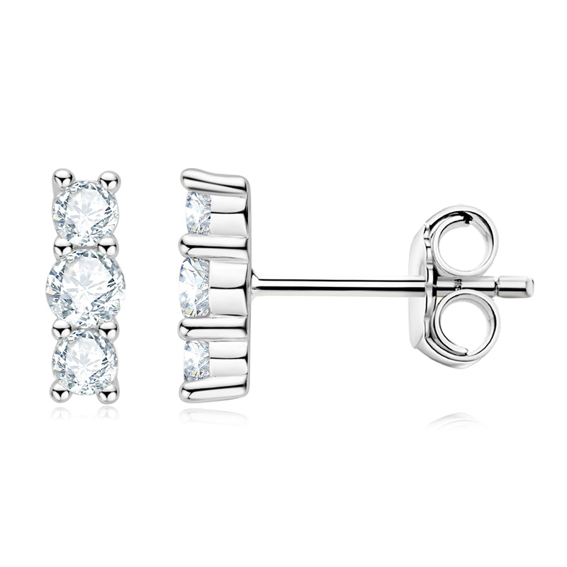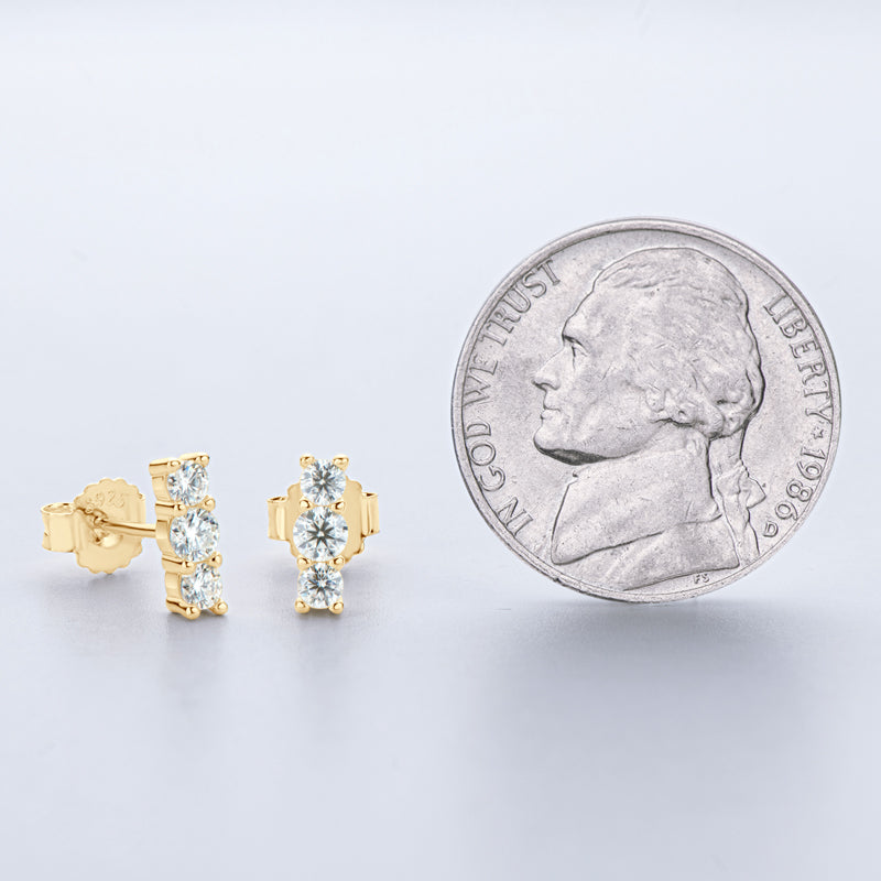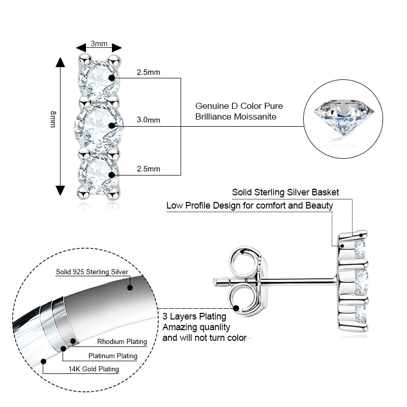 Our Triple Threat earrings are made from real moissanite diamonds. There are three diamonds in each earring that are 2.5 carats, and one diamond that is 3mm. Total carat weight for each earring is .38 carats.