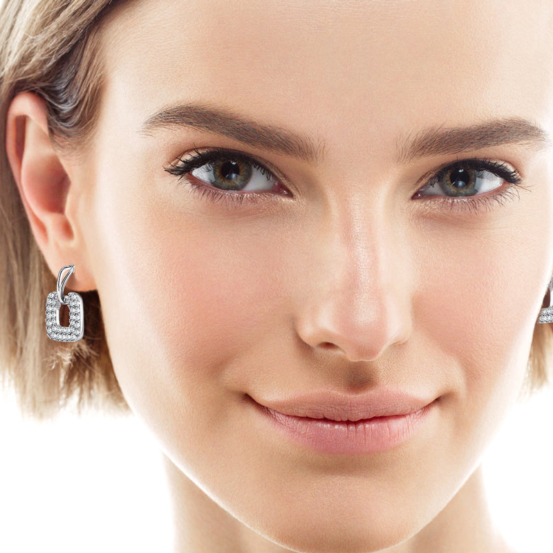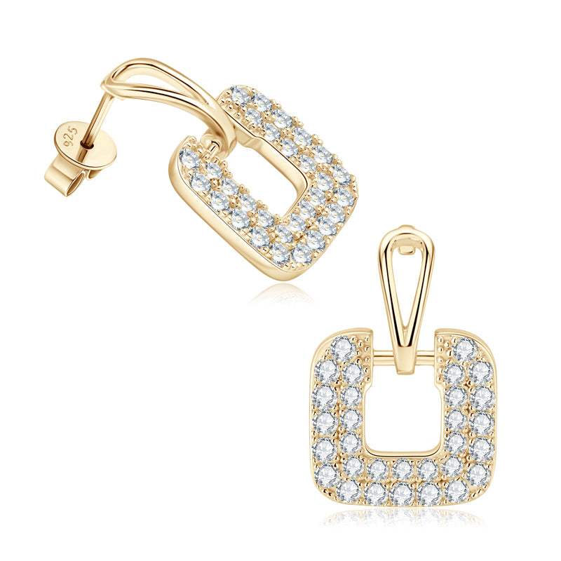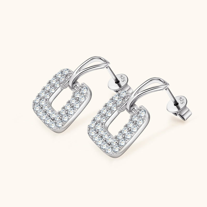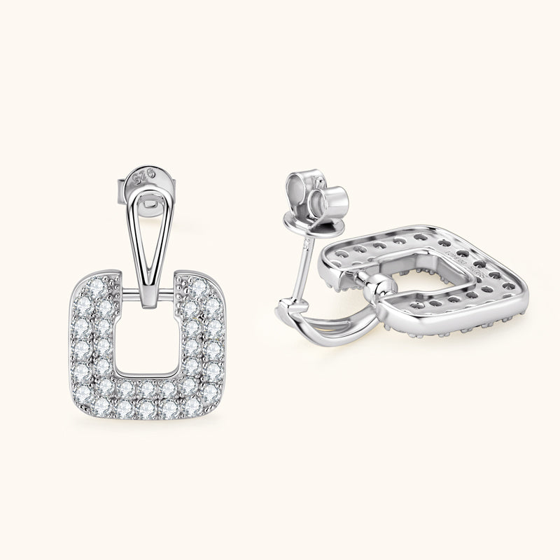 These stunning BUCKLE diamond earrings are paved with moissanite diamonds, adding a touch of timeless elegance to any outfit. There are a total of 34 1.6mm diamonds, and 26 1.4mm diamonds. Total carat weight is just 0.90 carats. Available in both yellow and white gold, these earrings offer versatility and impeccable style. A must-have for any jewelry collection.