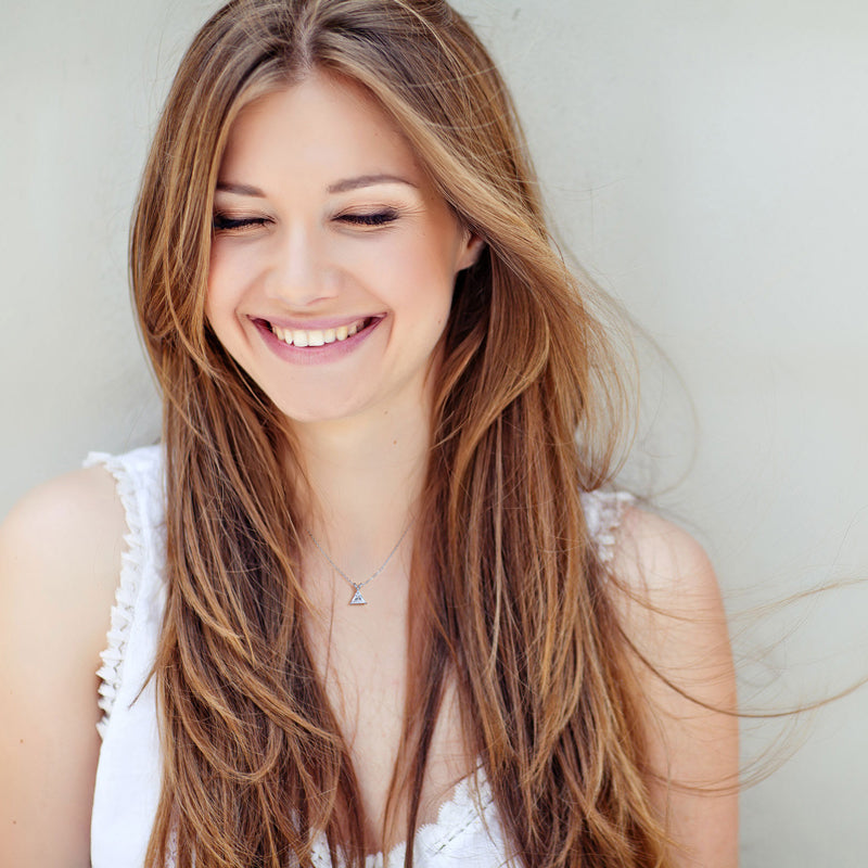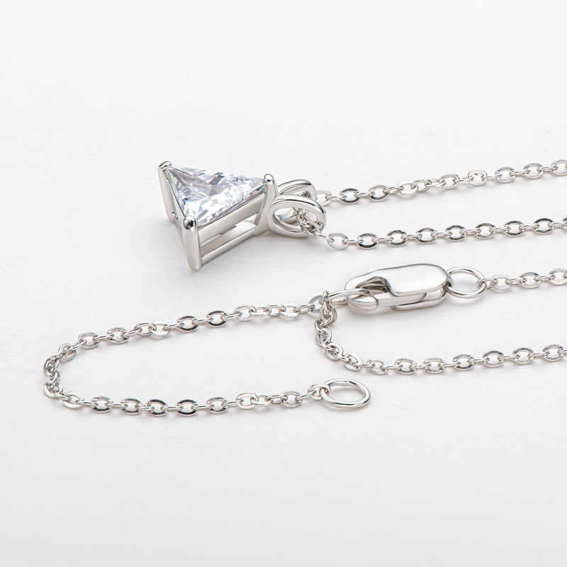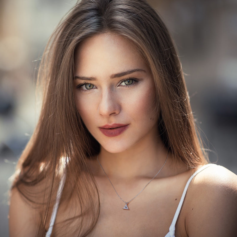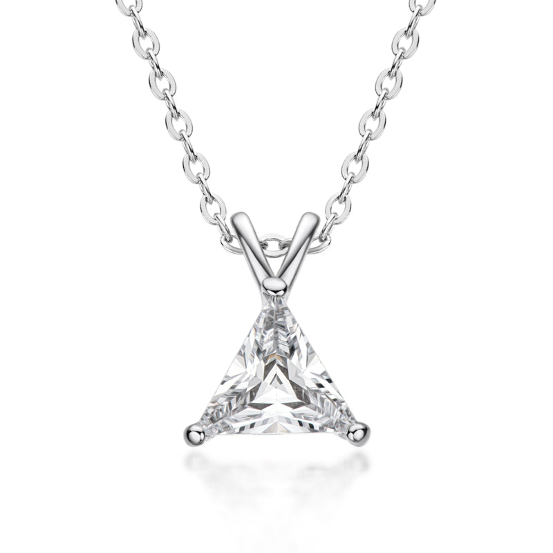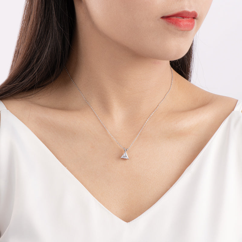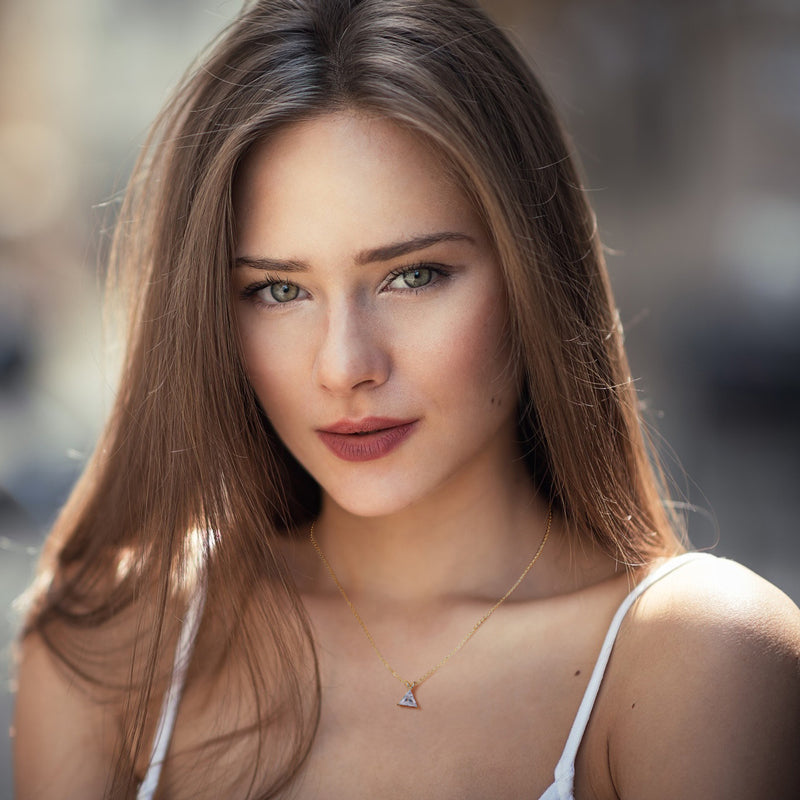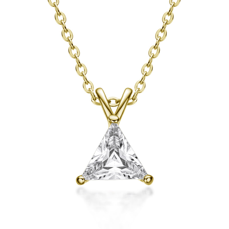 Introducing VIEUX - our exquisite Triangle Diamond Necklace. Available in both gold and white gold, this piece boasts a stunning 1.1 carat zircon triangle pendant on delicately suspended on a sleek chain.